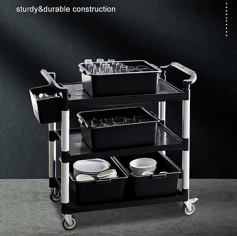 עגלה שלוש קומות פלסטיק לשירות הגשה ופינוי מזון - ארקוסטיל משלוח חינם